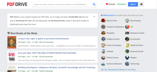 PDF Drive is another great website to download books from. It currently has about 76,050,886 e-books to choose from. The good thing? The number is increasing almost every second, so you will never run out of books to read!
