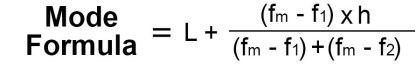 Mode= 200 + 10 { (32-19) / (32-19) + (32-15) }